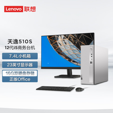 聯(lián)想 Lenovo 天逸510S英特爾酷睿i5個人商務(wù)臺式機(jī)電腦整機(jī) 12代i5-12400 16G 1T+256G SSDwifi win11 23英寸